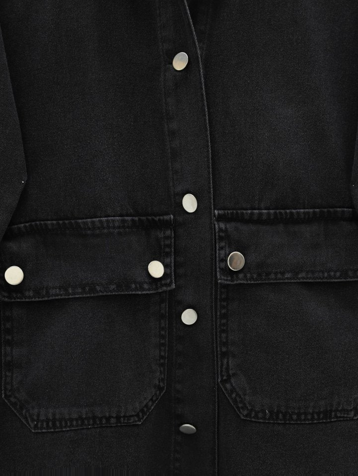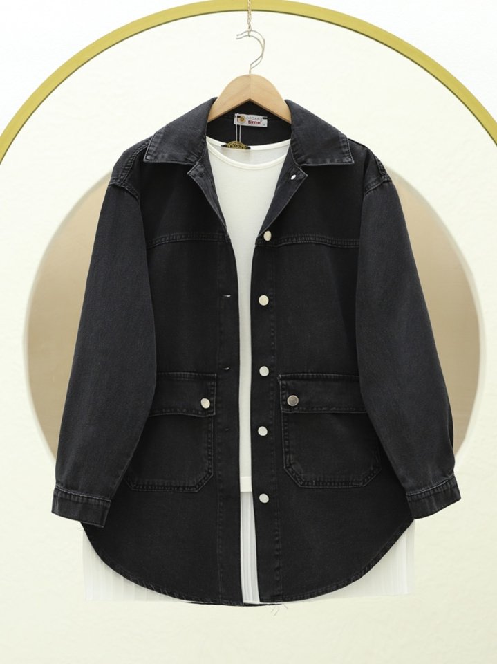 Torba Cepli Oval Kesim Kot Gömlek Ceket -Siyah