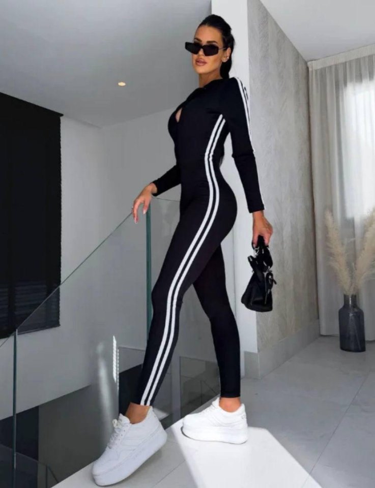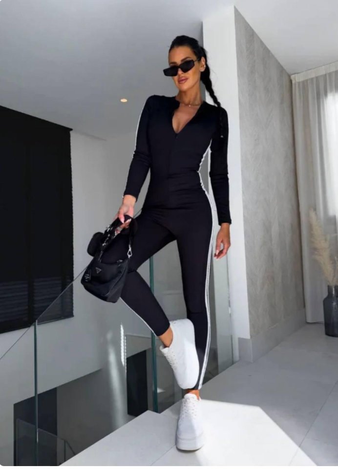 Kadın Uzun Kollu Yakadan Fermuarlı Kot Görünüm Desenli Uzun Modal Bluz