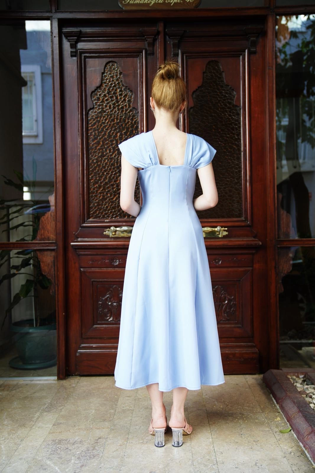 Kadın Kısa Kollu Yakadan Ve Etekten Fermuarlı Midi Viskon Iki Iplik Elbise