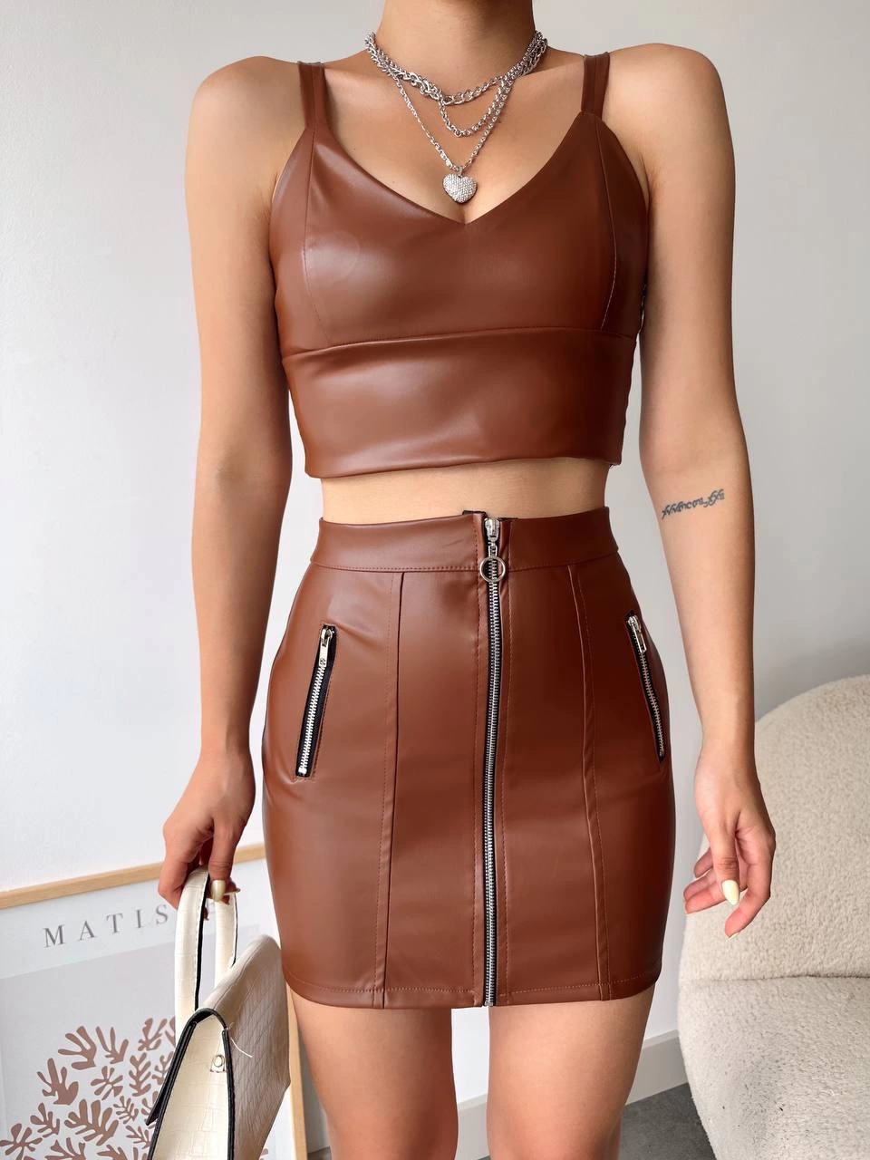 Crop Ceketli Ve Pile Etekli Garnili Takım 10111