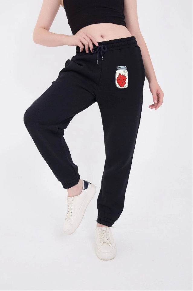 Üç İplik Lastikli Baskılı Eşofman Pantolon - Lacivert