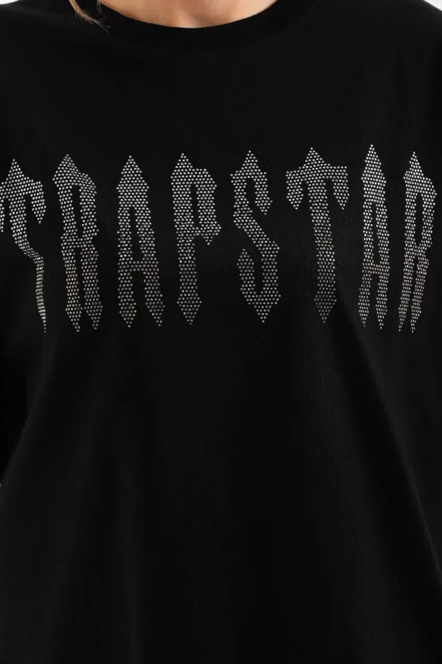 Unisex Taş Desenli Oversize T-Shirt - Siyah