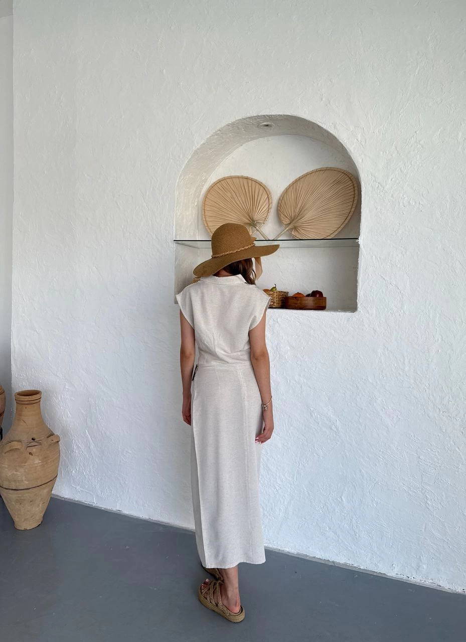 Kadın Kısa Kollu Yakadan Ve Etekten Fermuarlı Midi Viskon Iki Iplik Elbise