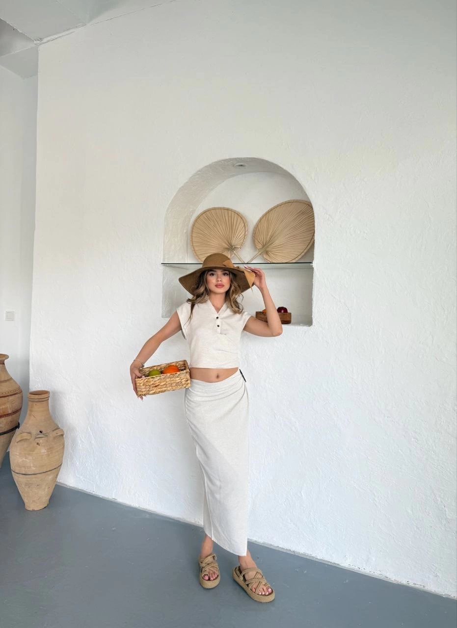 Crop Ceketli Ve Pile Etekli Garnili Takım 10111