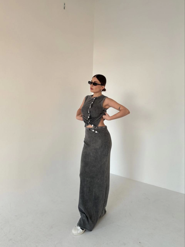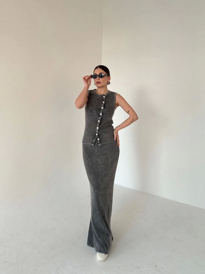 Uzun Etekli Önü Düğmeli Badi İkili Takım- Antrasit