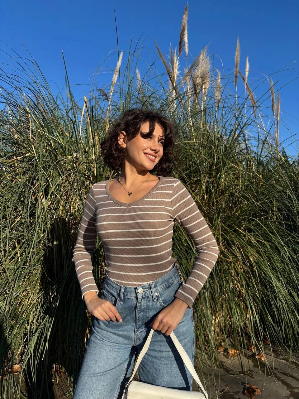 Kadın Uzun Kollu Kruvaze Yakalı Incili şardonlu Kaşkorse Bluz