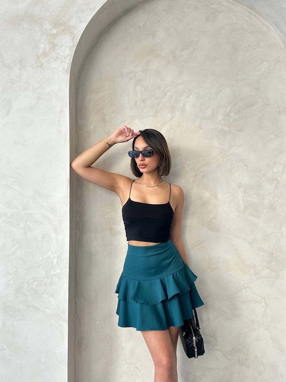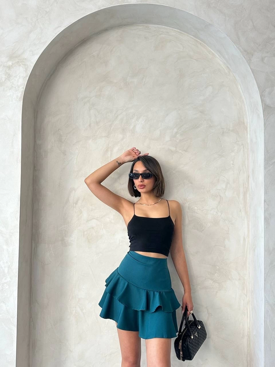Crop Ceketli Ve Pile Etekli Garnili Takım 10111