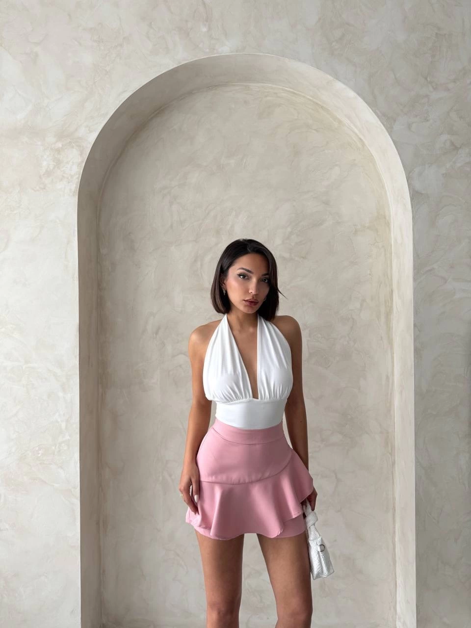 Kadın Kolsuz Boyundan çapraz Geçirmeli Göğüs Damla Detay Kaşkorse Bluz