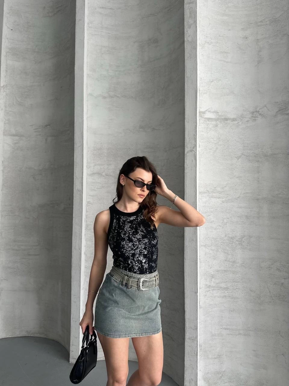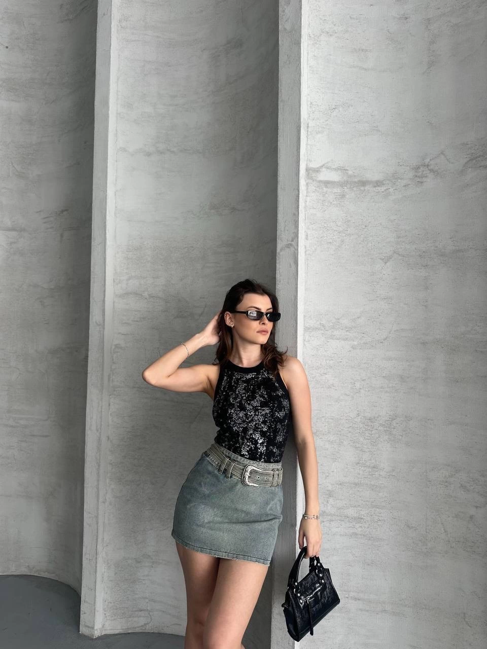 Kadın Kolsuz Boyundan çapraz Geçirmeli Göğüs Damla Detay Kaşkorse Bluz