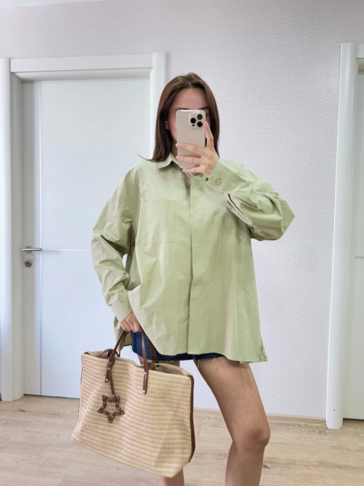 Yakalı Yandan Yırtmaçlı Gömlek - Yeşil