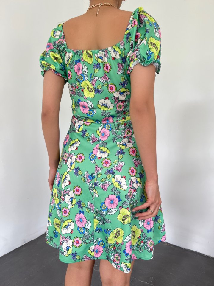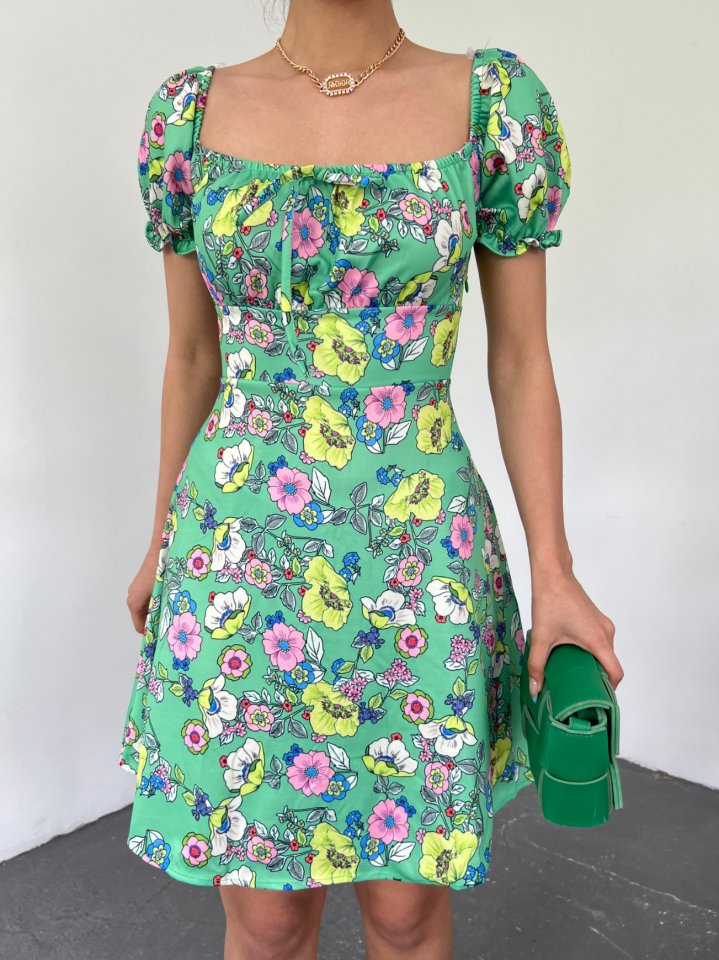 Yakası Lastikli Bağcık Detaylı Mini Elbise -A.Yeşil