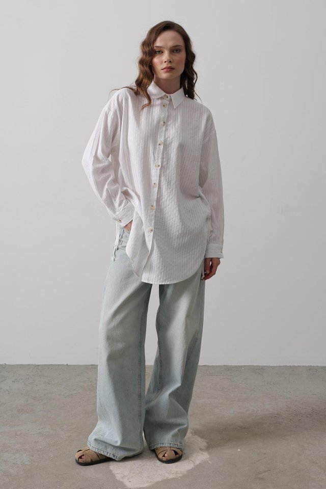 Yan Büzmeli Tunik Gömlek - Beyaz