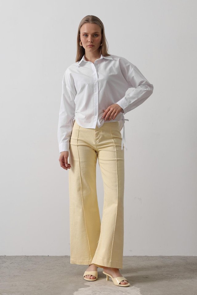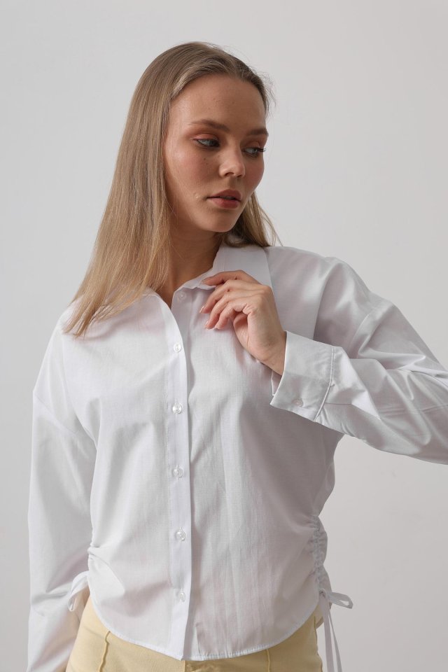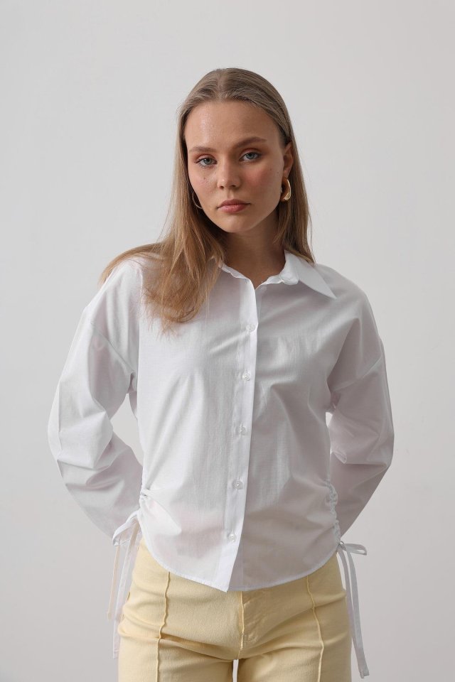 Yanları Bağlamalı Basic Gömlek - Beyaz