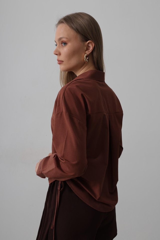 Yanları Bağlamalı Basic Gömlek - Koyu Kahve