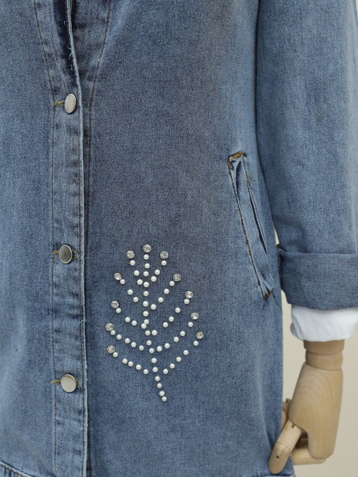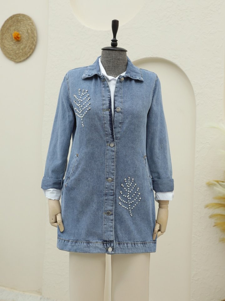 Yaprak Taş Detaylı Kot Ceket -Buz Mavi