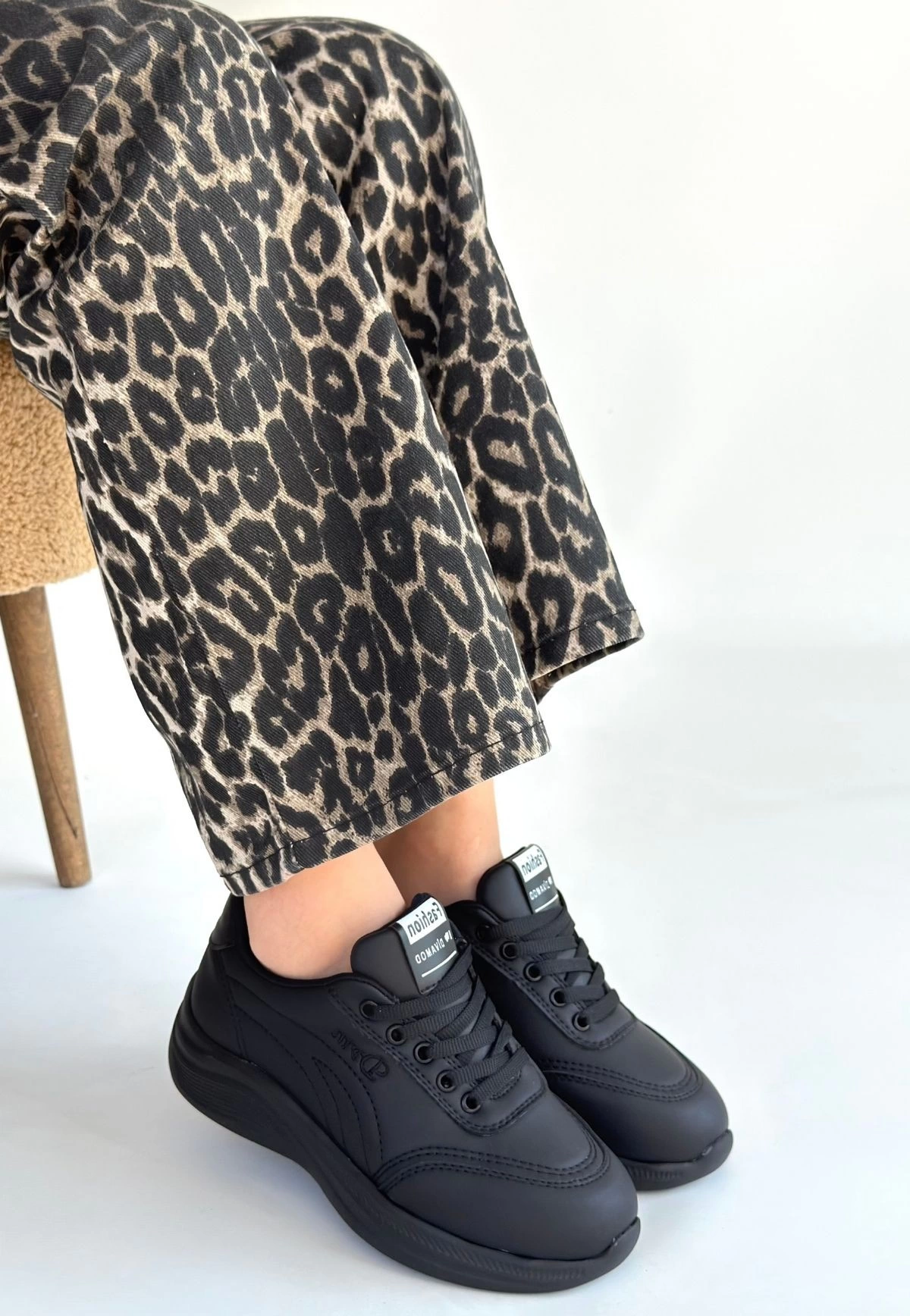Yejja Siyah Cilt Bağcıklı Spor Ayakkabı