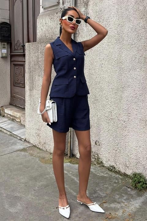 Crop Ceketli Ve Pile Etekli Garnili Takım 10111