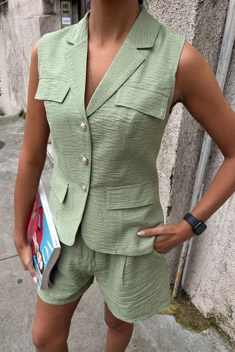 Crop Ceketli Ve Pile Etekli Garnili Takım 10111