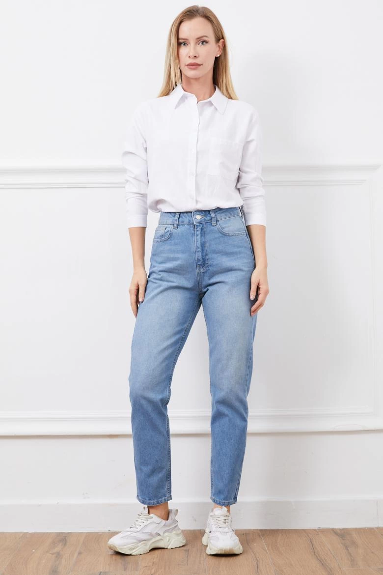 Yüksek bel mom jean pantolon