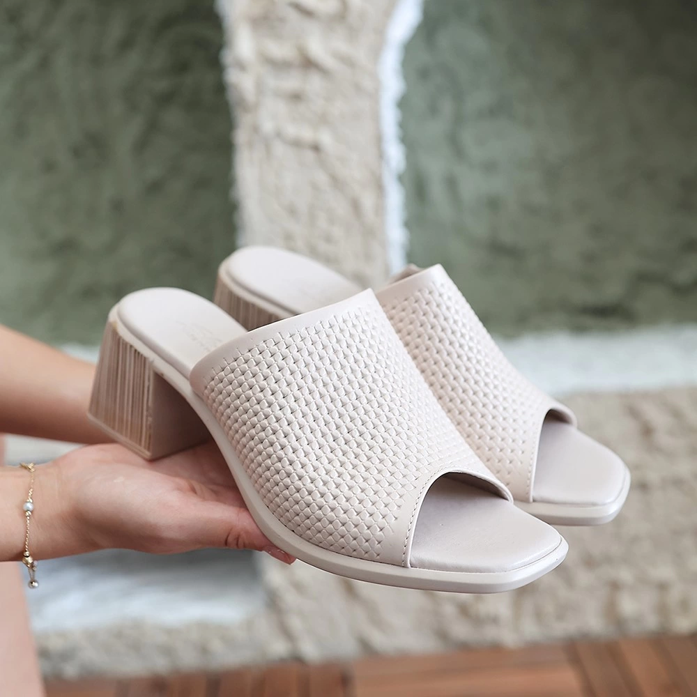Zanna Bej Cilt Topuklu Terlik