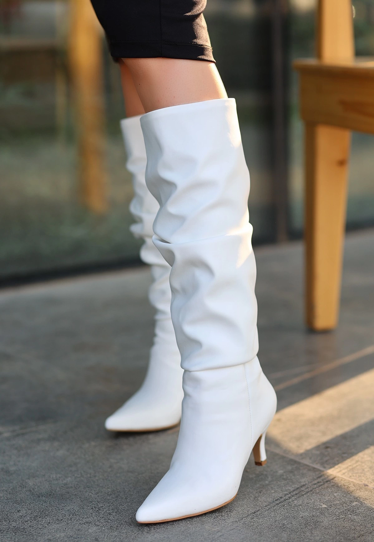 Zelya Beyaz Cilt Topuklu Çizme