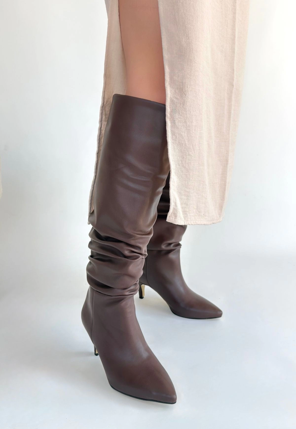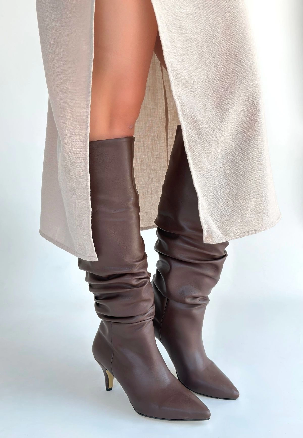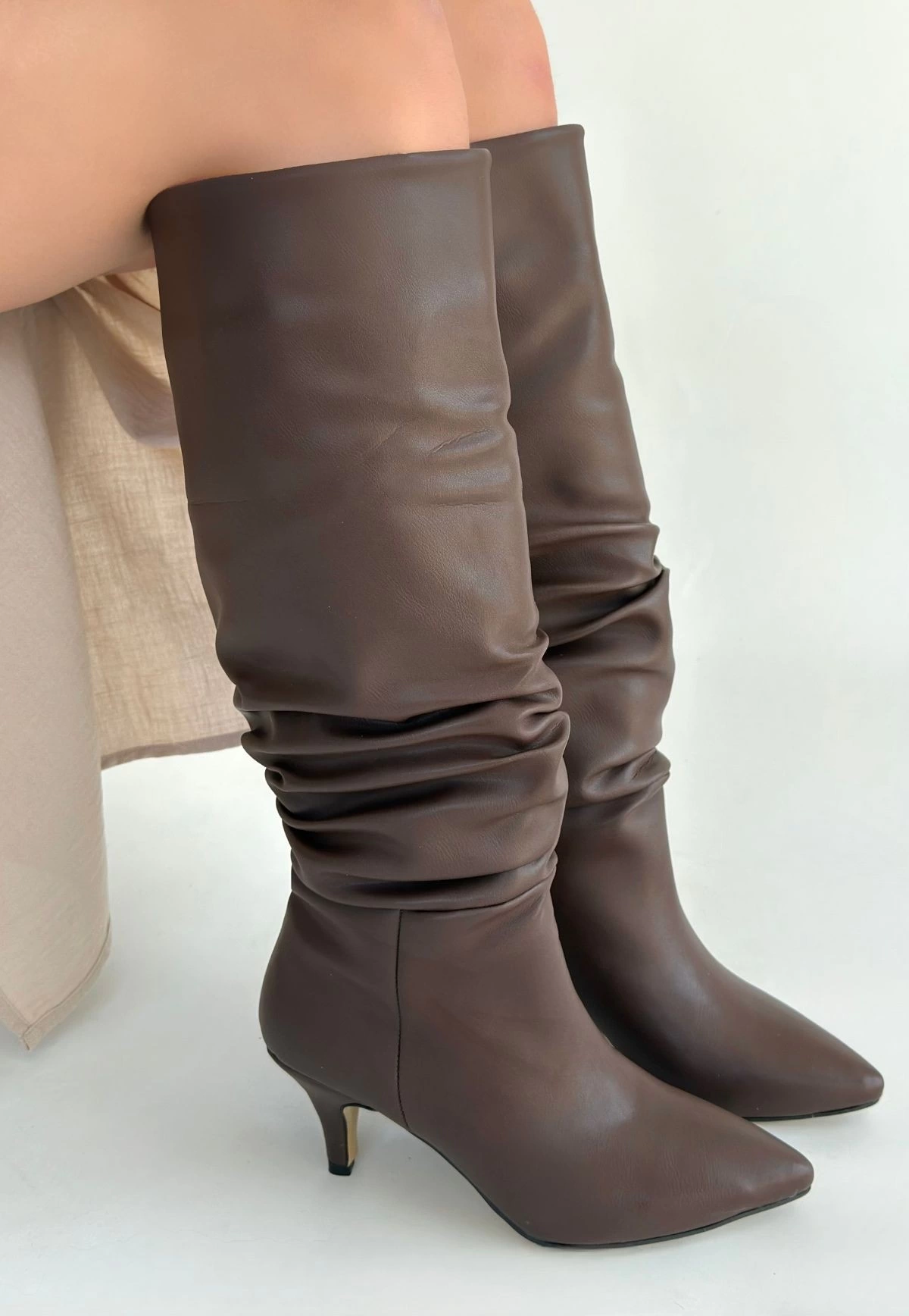 Zelya Kahverengi Cilt Topuklu Çizme