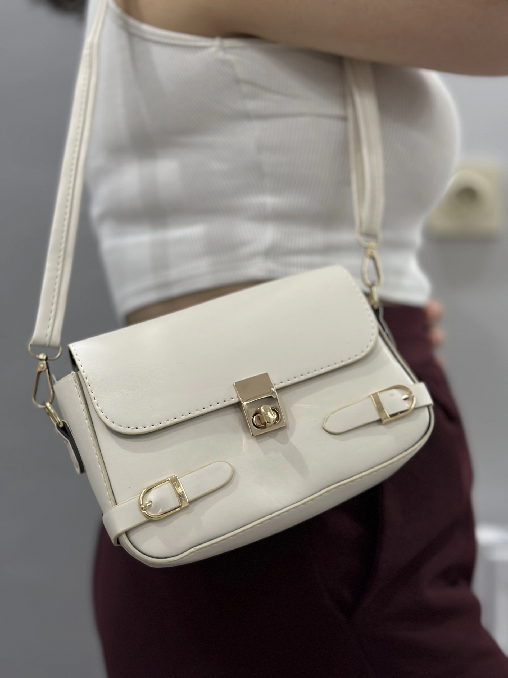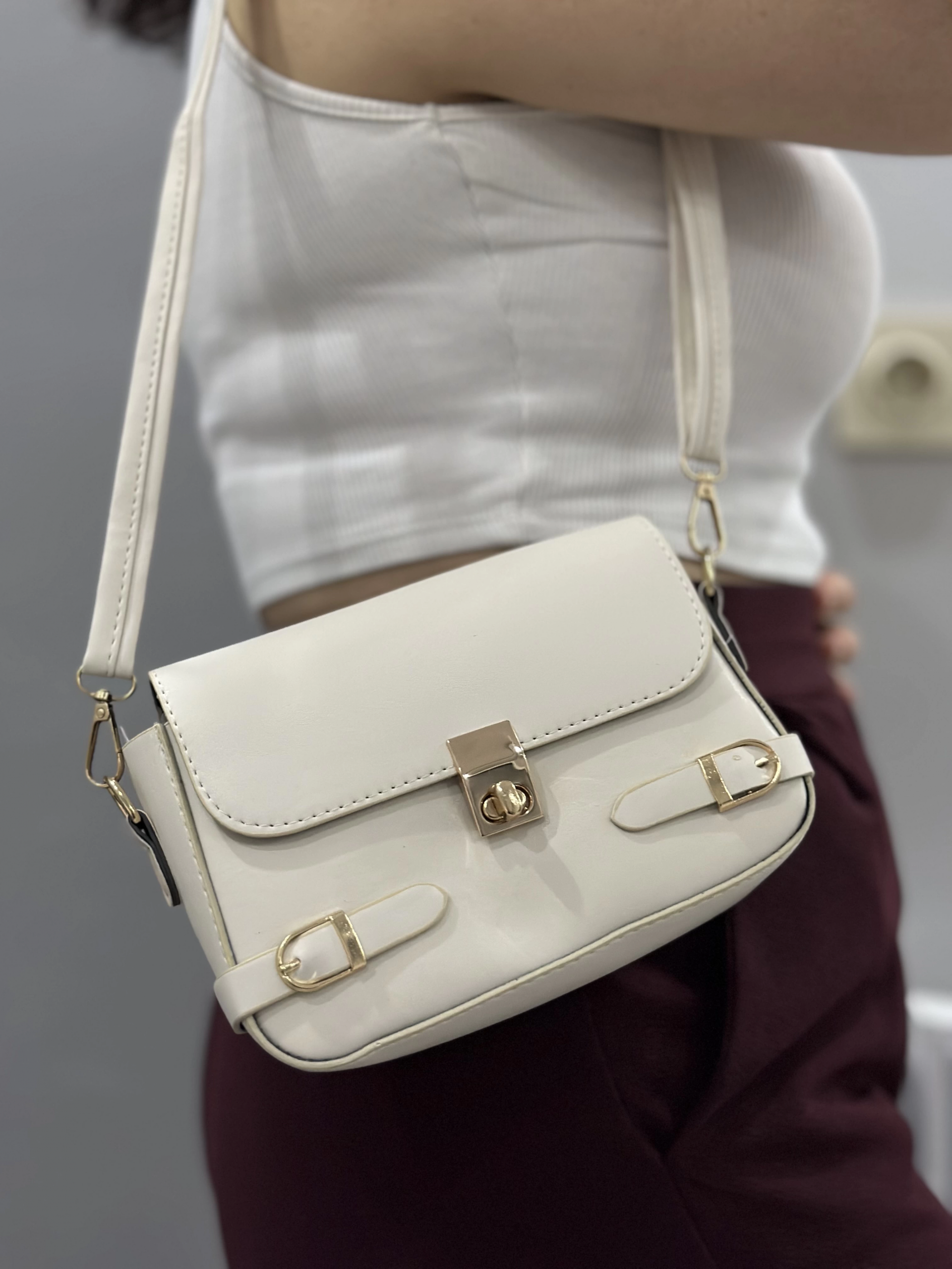 Zerej kemerli krem cilt çanta