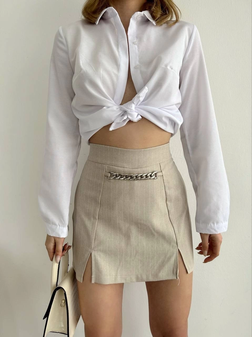 Crop Ceketli Ve Pile Etekli Garnili Takım 10111